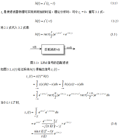 3. LFM脉冲的匹配滤波 信号的匹配滤波器的时域脉冲响应为: